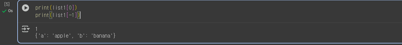 즉, list1[6]['b'] 를 해주면 된다.