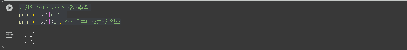 print(list1[:2]) # 처음부터 2번 인덱스
